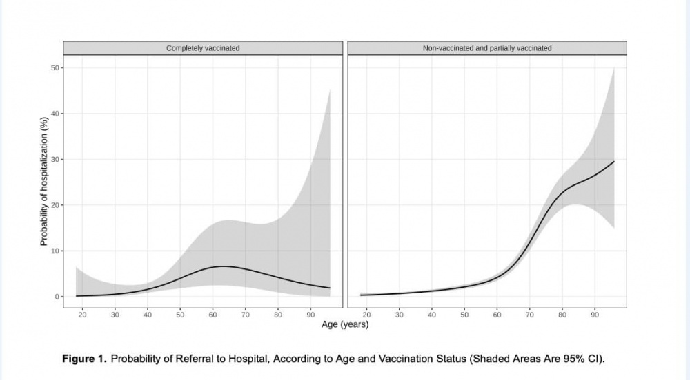 За обозначенный период исследования, говорится в препринте, были госпитализированы 495 человек, причем только 17 из них были полностью вакцинированы. На основании этой информации исследователи сделали вывод, что Спутник V на 81% эффективен в предотвращении случаев госпитализации. Также они указывают, что вакцинация в большей степени снижает риск госпитализации среди женщин (84%), чем среди мужчин (76%), и зависит от возраста: среди пациентов старше 50 лет вакцинация на 82% эффективна в предотвращении госпитализации, тогда как среди граждан от 18 до 49 лет – на 63%.